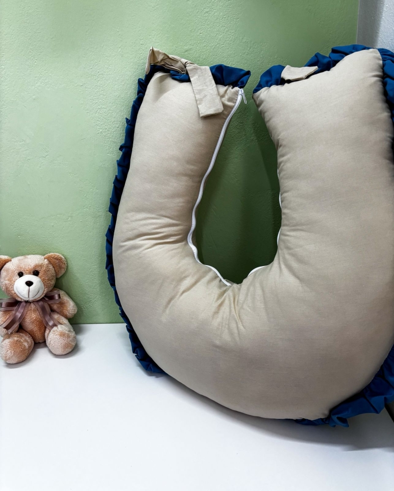 Almofada de amamentar premium - Caqui/azul